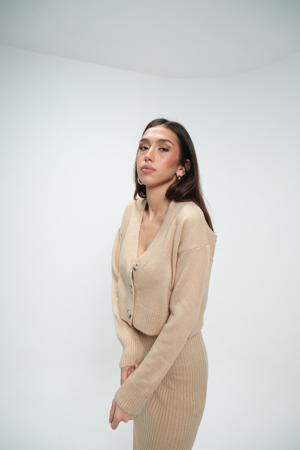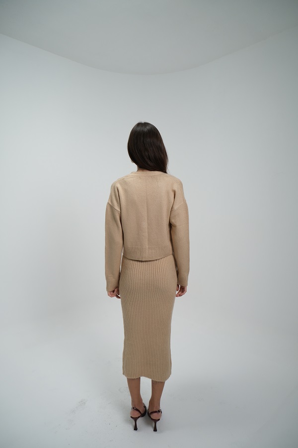 Bej Fitilli Elbise Hırkalı Takım -MTE001B
