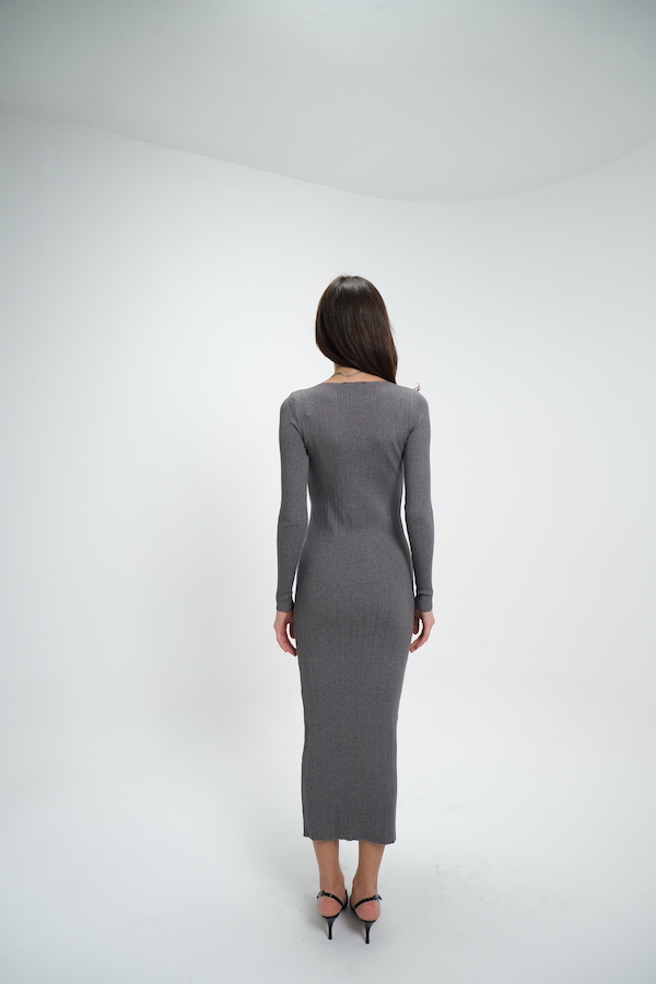 Gri Triko Kayık Yaka Biyeli Elbise – (MTE002G)